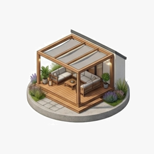 A szerkezeti lucfenyő méretpontossága és kedvező roststruktúrája stabil alapot biztosít az épületnek, míg a kültéri burkolatoknál alkalmazott vörösfenyő és WPC rendszerek hosszú távú időjárásállóságot nyújtanak.