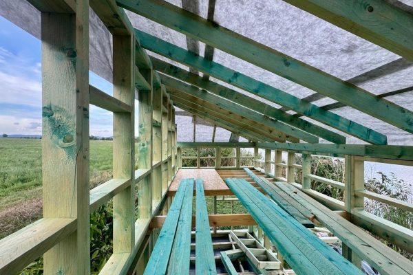 A szerkezeti lucfenyő méretpontossága és kedvező roststruktúrája stabil alapot biztosít az épületnek, míg a kültéri burkolatoknál alkalmazott vörösfenyő és WPC rendszerek hosszú távú időjárásállóságot nyújtanak.